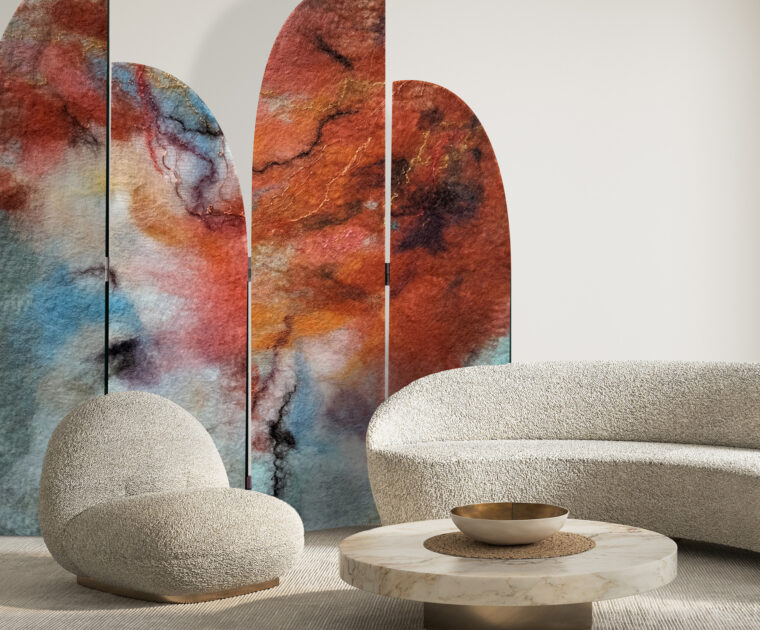 Feutrio Créatrice textile depuis 2004 Mariche Bourmaud produit du feutre artisanal en mêlant la laine…