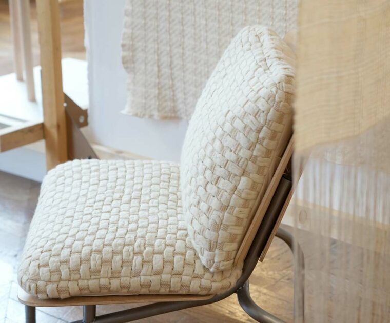Justine Gaignault L’alliance du lin et de la laine en tissage graphique Justine Gaignault, créatrice…